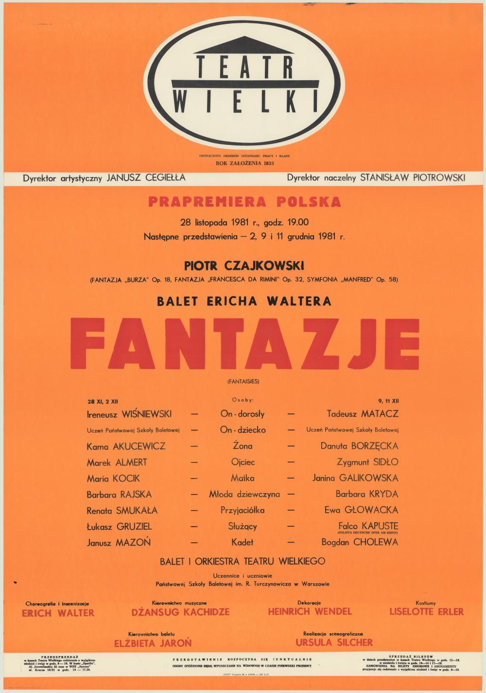 Afisz obsadowy. „Fantazje” Piotr Czajkowski 1981-12-09
