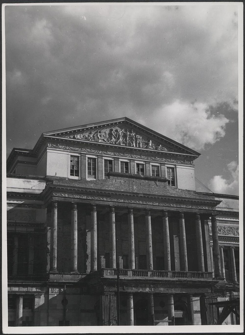Fotografie z realizacji odbudowy Teatru Wielkiego ze zniszczeń wojennych. -