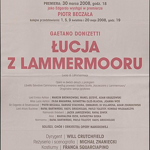 Wkładka obsadowa - „Łucja z Lammermooru” Gaetano Donizetti 01-04-2008